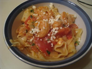 Drain pasta; return to saucepot. Add shrimp mixture to pasta in saucepot and toss to coat. Spoon mixture into a large serving bowl; sprinkle with additional feta if desired.