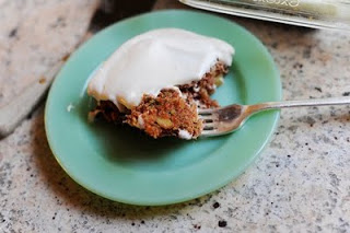 I used a can of cream cheese frosting, but here’s a recipe for frosting from the original recipe. Next time I make this cake, I’m making the frosting.