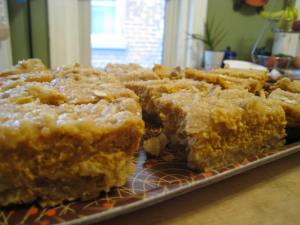 Preheat oven to 350 degrees. Line 13×9 inch baking pan with foil, making handles on the end. Grease foil lining.