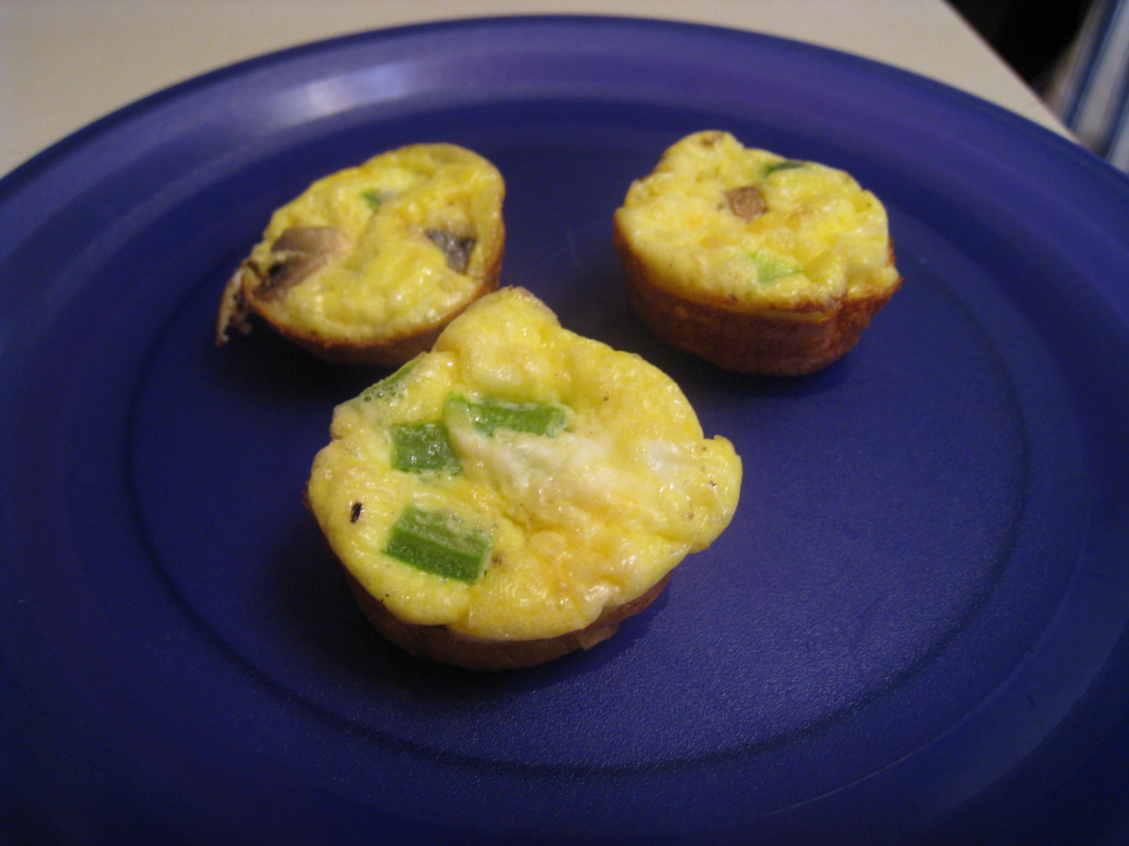 I’ve been looking for a way to add some protein to my daughter’s breakfast during the week when she’s at daycare. I came across this recipe in the November issue of Parents Magazine. I used green peppers and mushrooms since that’s what I had in the house. I’m thinking about adding diced potatoes and sausage to the next batch.