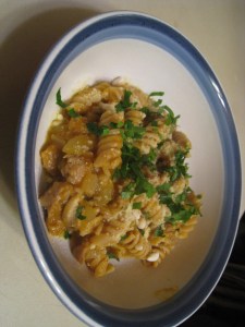 I’ve been wanting to try a savory dish with pumpkin and was excited when I saw this recipe in the December/January 2010 issue of Taste of Home Heathly Cooking magazine. My daughter loved it, but my husband and are weren’t sold on it. It needs something, but neither one of us could figure out what was missing – so I’m putting it out there to my readers to try to figure out what will make this recipe better.