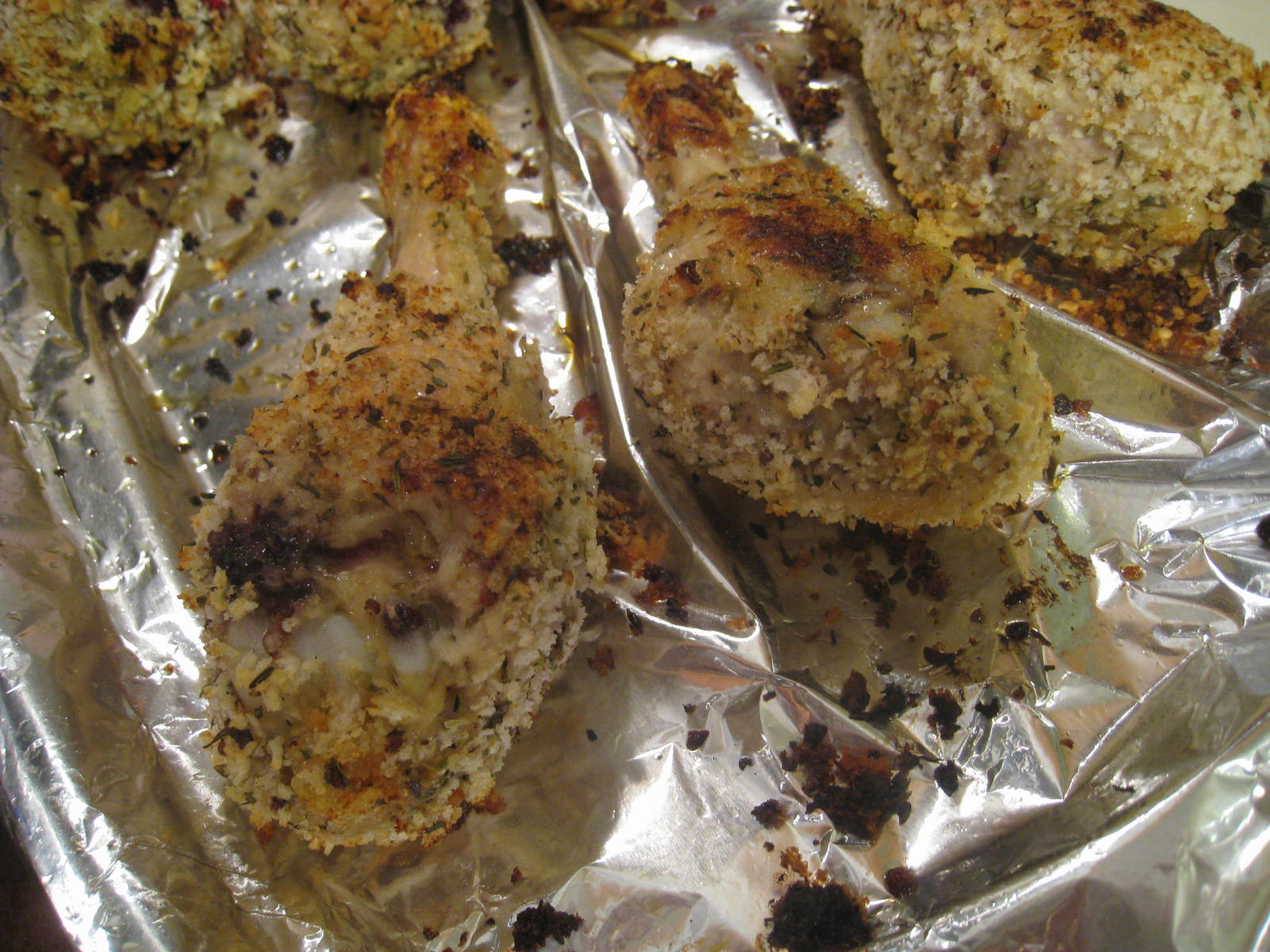 Brush the drumsticks with the mustard; set aside. Mix the panko, herbs, salt and pepper in a large zip-closed bag; add the drumsticks. Squeeze out the air and seat the bag. Turn to coat the drumsticks.