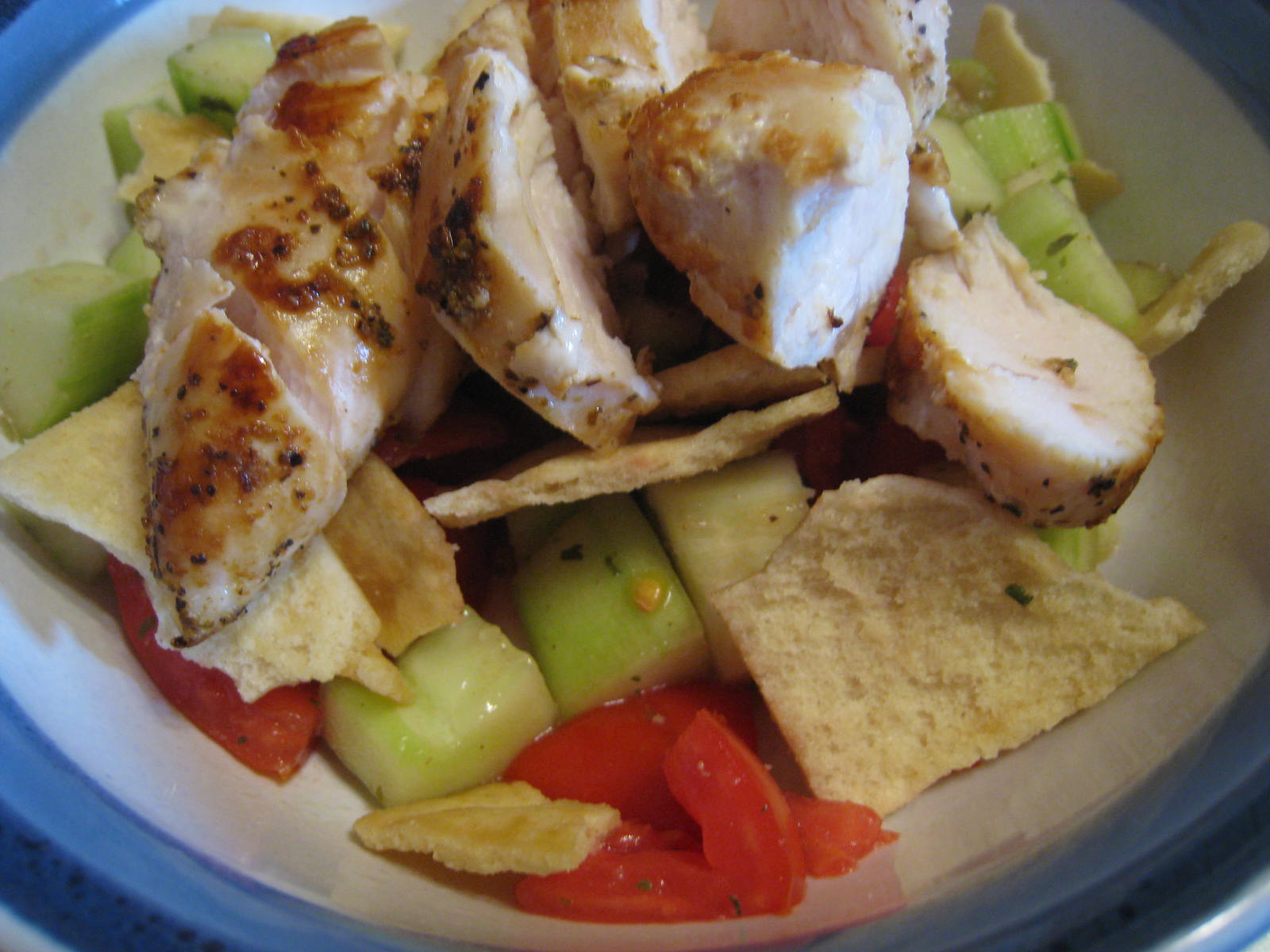 Anyways, this salad was really good, light and refreshing. It’s a traditional Middle Eastern salad . I topped it with roasted chicken and it made a great main course.