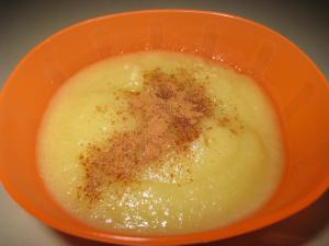 Peel and cube apples. Place into a microwave steamer bag. Fill bag and cook for 3 minutes. Cool slightly and then put into blender. Puree until smooth, or chucky depending on your preference.