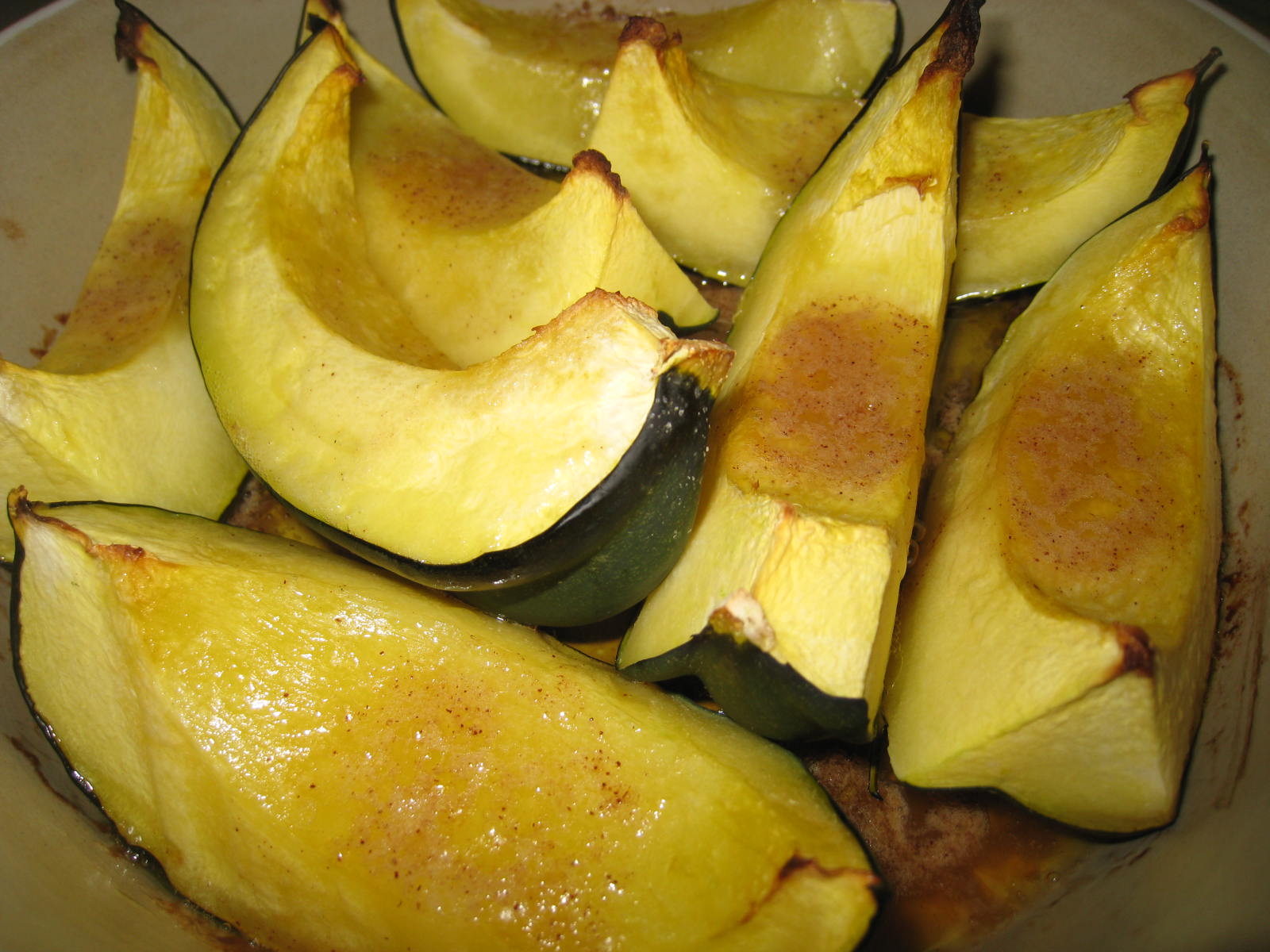 I bought an acorn squash at the Farmer’s Market last week and had planned to use it last week, but didn’t get around to it. I made it tonight with salmon cakes and a salad. It was a nice little sweet treat to have with dinner.