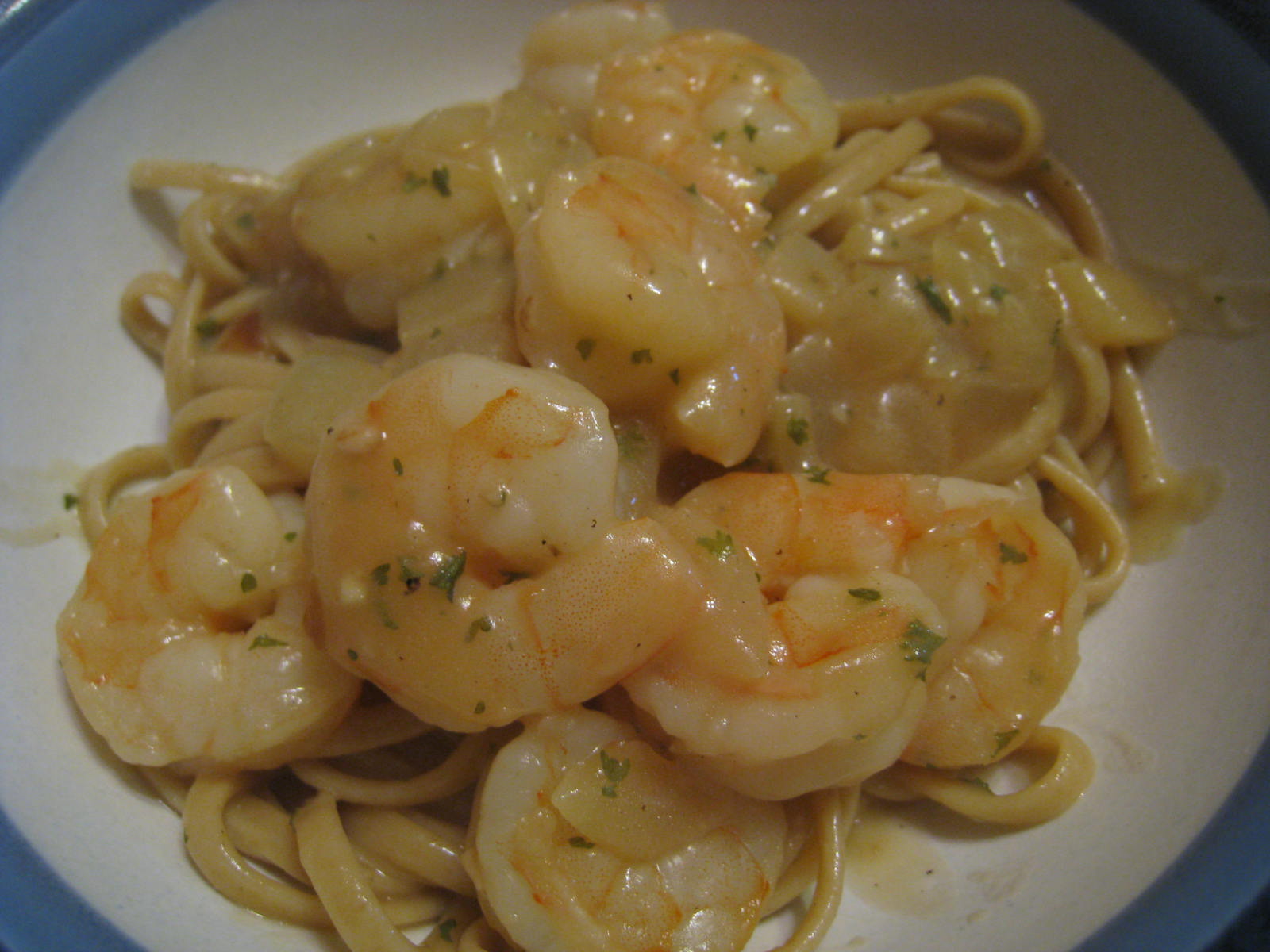Add the remaining broth and the broth-flour mixture into the pan, bring to a boil whisking constantly. Reduce the heat and simmer for 5 minutes. Stir in shrimp and cook for 3 minutes until shrimp are cooked. Stir in lemon juice, butter and parsley. Pour shrimp and sauce over cooked linguine.
