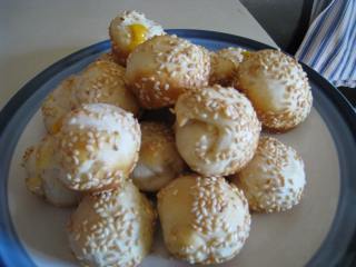 Wrap one piece of crescent dough around one cube of cheese. Try to press the crescent so that no cheese is showing. Some will still seep out of some of the pops, but this prevents too much from leaving the crescent shells.