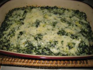 *Make sure to squeeze as much liquid out of the spinach as you can or the gratin will be watery. The best method is to put the spinach in a large dishtowel, roll up the towel and twist the ends to wring out the water.