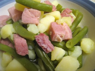 This recipe is a traditional Pennsylvania Dutch recipe. It’s super easy, at least the way I make it! You can use a ham hock and cook that down, but I didn’t have time and ham slices were on sale this week.