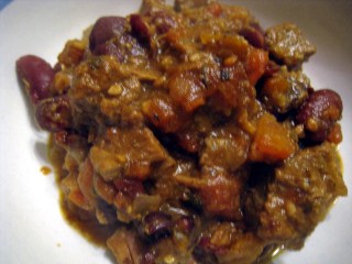 My husband has been asking for chili for the last couple of weeks and I finally broke down and made a batch. It’s definitely chili weather around here and has been for the last week! This is a new recipe and made the perfect amount. It was even better since I had a london broil in the freezer that needed to be used! I apologize for the bad picture – I was hungry and didn’t want to wait for the chili to cool down.