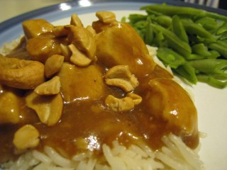 Serve the chicken mixture over the rice and top with the cashew pieces.