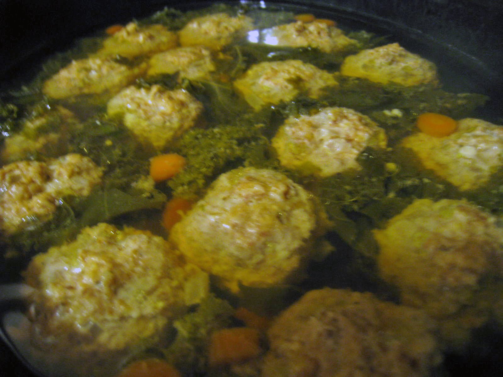 I have been wanting to make a soup similiar to Italian Wedding soup but saw this recipe in my Box ‘o recipes.…you know the stack of recipes you’ve ripped out of magazines to make one day! Well, I’m slowly getting through that box and definitely enjoying the recipes I’ve been saving for over 2 years! This was one of them and it didn’t disappoint!