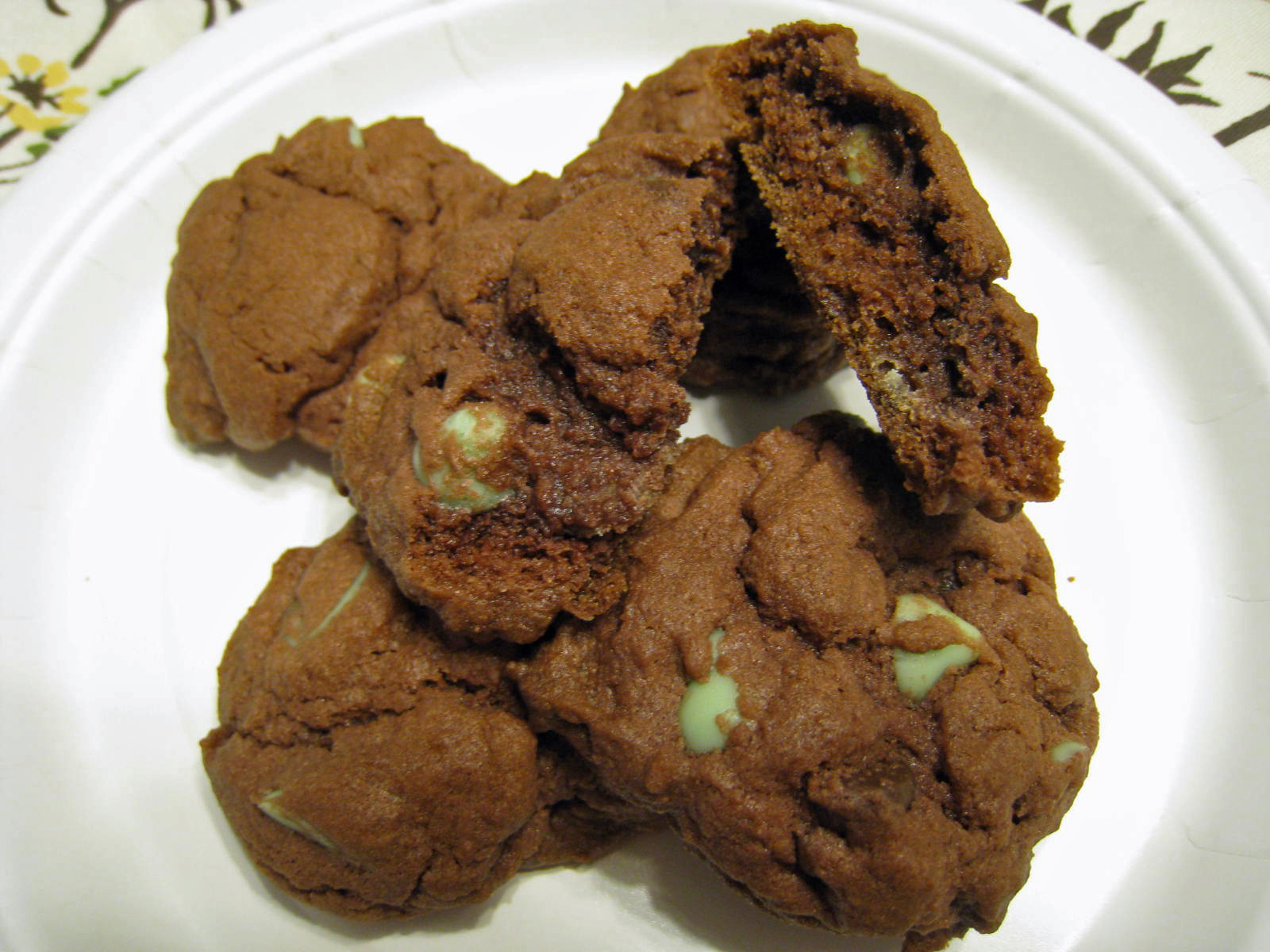 While getting an oil change at Walmart a couple weeks ago, I had about an hour to spare and wondered the aisles. I stumbled upon a bag of dark chocolate and mint chips that were on sale. Now, dark chocolate and mint is one of my favorite flavor combinations and I knew that I wanted to change up my chocolate chip pudding cookie recipe to use these chips.