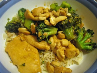 Stir in the chicken into the skillet with the broccoli. Add the remaining ingredients except for the cashews. Stir to combine and cook for 2 more minutes or until heated through.
