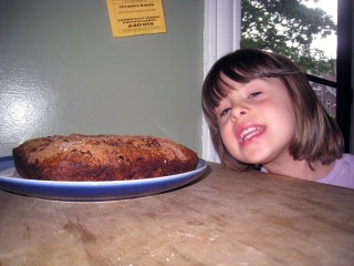 And because my little one wanted to get her picture taken with the cake. LOL! Make sure you come back…I have another recipe that features some more of those over ripe bananas!