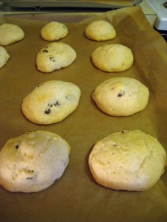 Drop by tablespoonfuls onto your prepared baking sheet. Bake for 8-10 minutes or until lightly browned. Cool on wire racks. Makes 2 dozen bites.