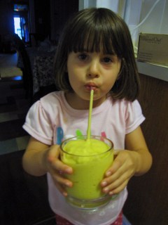 My husband has been adding them to his greek yogurt, but I wanted to use the rest of the bag for smoothies. Both he and Madeline loved the smoothie. I didn’t even get to taste it! See what I mean about mangos quickly disappearing in our house.
