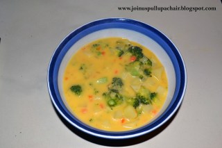In a bowl, mix together the water and flour until combined well. Add the to the soup and simmer until it starts to slightly thicken. Add the milk and broccoli and cook until the broccoli is tender and the soup is heated through. Stir in the cheese and allow to melt. Season with salt and peper. Serve in big bowls with a side of crusty bread. YUM!