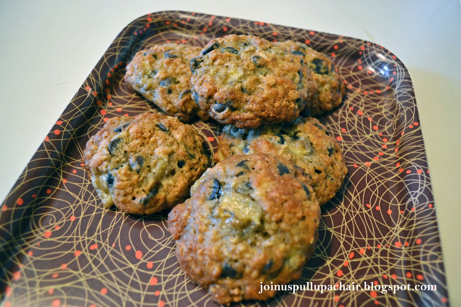 Banana oatmeal chocolate chip cookies…whew that’s a mouthful! But a yummy mouthful, if I do say so myself! Once again, I had some overripe bananas and wanted to try something different with them. I searched through all my cookbooks and found this recipe. It’s perfect since I had all the ingredients in my pantry (love when that happens!) and could whip up a batch immediately. The dough is super soft which makes for a super, soft cookie!
