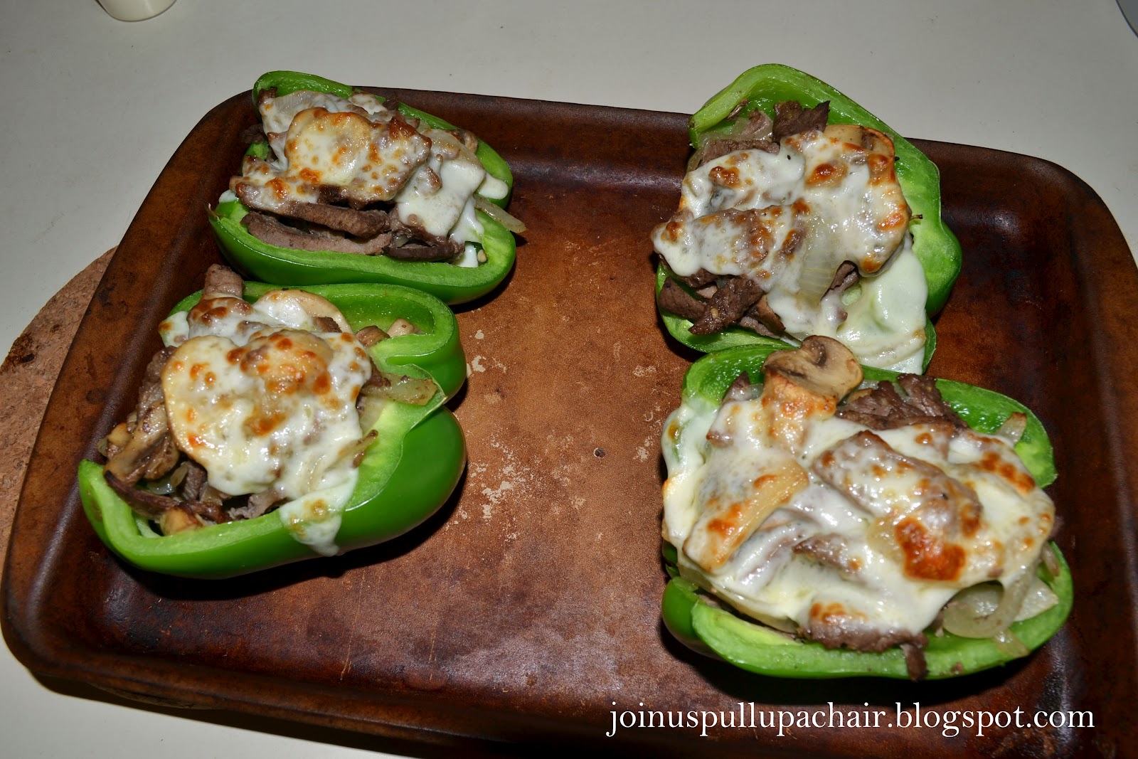 Bake for 15 to 20 minutes or until the cheese on top is golden brown and the pepper is fork tender.