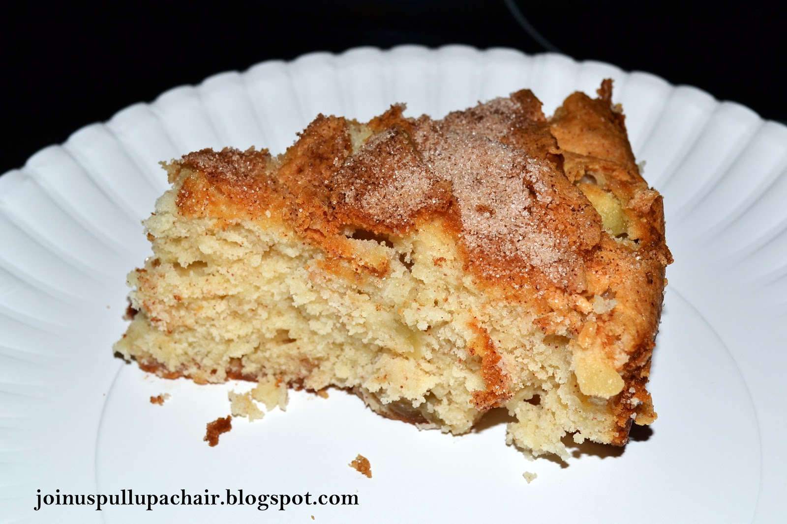 We both made the cake and I have to agree with Megs, it’s delicious and so moist. The cream cheese in the batter makes it. You must try it and make it this weekend….just be prepared for it to be eaten in record time. My only suggestion is to double the amount of apples – I’ll note the amount I’ll use next time in the recipe below. Both my husband and I wanted there to be more apple pieces in the batter.
