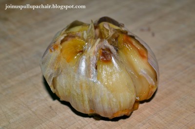 Preheat oven to 400 degrees. Place the garlic bulb on a piece of aluminum foil. Drizzle with olive oil and wrap the bulb. Put the wrapped garlic on a baking sheet and bake for 30-35 minutes or until the garlic feels soft. Let cool enough to handle and then cut the skin with a small knife. Remove each clove of garlic with your fingers or a small fork.