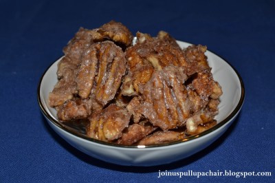 I’ve been wanting to make some sort of glazed nut recipe for months now. My friend Meg was making glazed nuts the other day and said she thought of me while making them. After she was disappointed in her recipe, I decided to look around and see what type of glazed nut recipes I could find. I stumbled on this recipe for rum-glazed roasted pecans and since I had all the ingredients in my pantry, I gave it a shot.