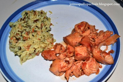After 3 hours remove, chicken and cut into bite-sized pieces. Return back to the slow cookerand toss in the sauce to coat. Serve with rice or noodles.