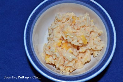 My son has been in therapy for the last couple of months due to texture issues while transitioning to finger foods. He’s doing great and hopefully will be graduating soon. While in this process, I’ve been working on trying to introduce foods with different textures and this recipe fit the bill. He didn’t care for it, but both my husband and I did! This recipe is also perfect right now since peaches are just coming into season!