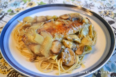 We all loved this recipe even Madeline! I made something different for Cooper because I’m not sure he would have liked it. I know the mushrooms would have been fine but probably not the artichokes. Next time I make it, I’ll serve it with a rice pilaf instead of spaghetti.
