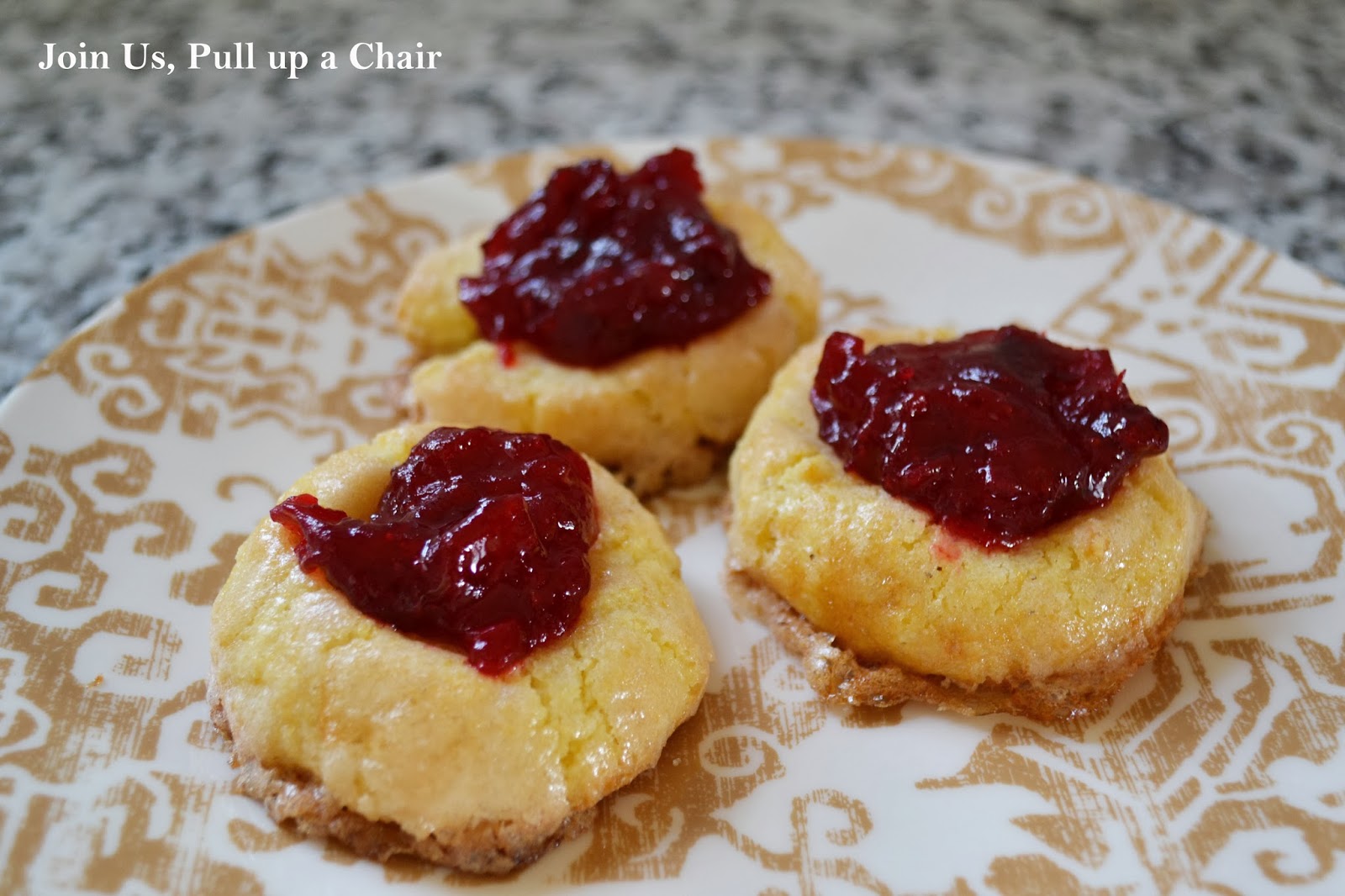 Welcome to November’s Fill the Cookie Jar. I missed last month, I seriously don’t know what happened to be beginning of October but I’m glad to be back this month. The theme this month was Thanksgiving cookies. I had to really think about it…I couldn’t do a pumpkin cookie since I did one in September but what else represented Thanksgiving. So off to Pinterest I went and searched for Thanksgiving cookie. I came across so many different types of cut out sugar cookies but I wanted something different and that’s when I saw a picture of cranberry thumbprint cookies. Perfect! I always have leftover cranberry sauce after Thanksgiving dinner and this is another great way to use it.