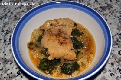 This recipe originally called for Israeli couscous and would have been one pot, but my grocery store doesn’t carry this type of couscous, so I substituted quiona in its place. I’ll need to pick up a bag of it next time I’m at Wegmans. This was a hit with everyone, even my little guy ate some of the chicken and kale. I loved that it was easy to make and took no time at all.
