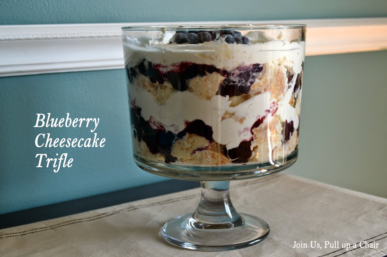 To assemble the trifle, place half of the cake pieces on the bottom of the bowl. Spread a layer of the blueberry filling and then top with half of the whipped cream. Repeat the layer one more time. Top with additional blueberries if you have any. Cover and refrigerate for at least 2 hours and up to 24 hours.
