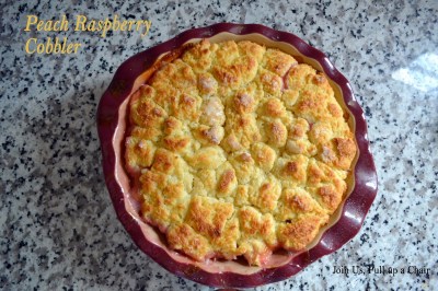 After drooling over all the pictures, I settled on two recipes, Grilled Corn Dip and Peach Cobbler. I know I’ll be making the recipe for yogurt, brown sugar and berry parfaits next time we have guests over for dinner. The chimichurri shrimp looks amazing too! I don’t think you can wrong cooking from this book!