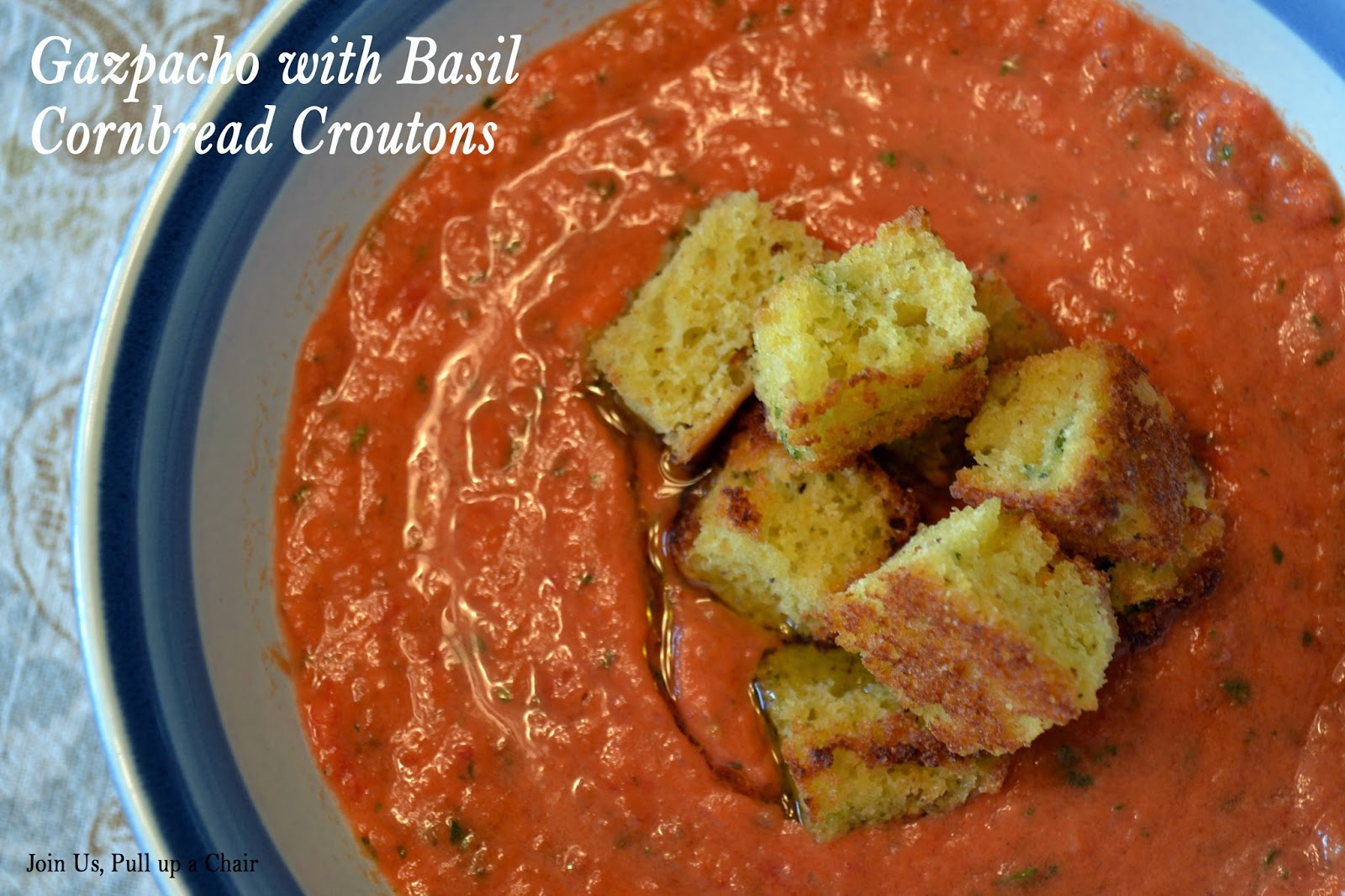 1 thought on “Gazpacho with Basil Cornbread Croutons”