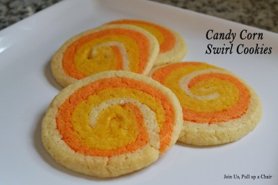 So now onto the cookies. They’re a simple sugar cookie recipe, colored with dye and then rolled up. They could be made for any season or in a variety of colors. I thought it would be fun to do candy corn colors, since it’s my favorite candy at Halloween. My daughter was excited for them since I haven’t made cookies in a couple of weeks.