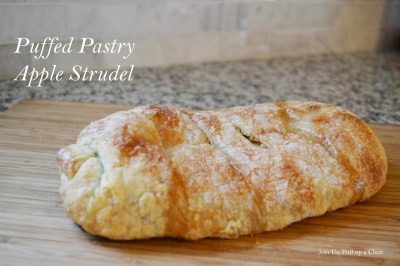 I did have a couple apples laying around that needed to be used up. I looked through some of my many cookbooks and found this recipe for an apple strudel using puff pastry. Genius! That’s so much easier than phyllo dough, which I’m not a fan of. This strudel was so simple to make and took no time at all! It was also devoured in no time at all too! I share a couple slices with some friends who saw me sneak peek it on Facebook. I have another piece of frozen pastry and I know I’ll be making it again once I get more apples.