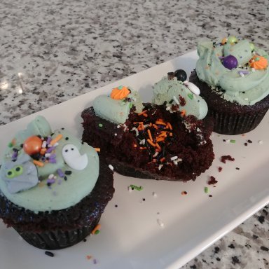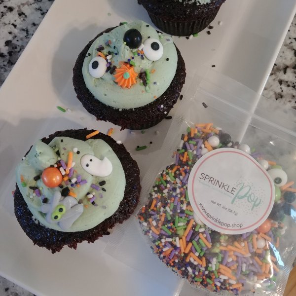 Today is National Chocolate Cupcake day and the perfect way to celebrate is with these Monster Mash-up Filled Cupcakes. It’s also the fourth day of #choctoberfest and today’s cupcakes features a product from one of our sponsors, Sprinkle Pop. Sprinkle Pop creates trendy sprinkle mixes that you can’t find anywhere else. I used the Monster Mash-up mix – which included pumpkins, eyes, ghosts, and so much more. I love that they color over 50% of their sprinkles in-house, so each batch is a one-of-a-kind experience. Even better – all their orders are shipped for free in the US. What sprinkle mix would you love to create something with?