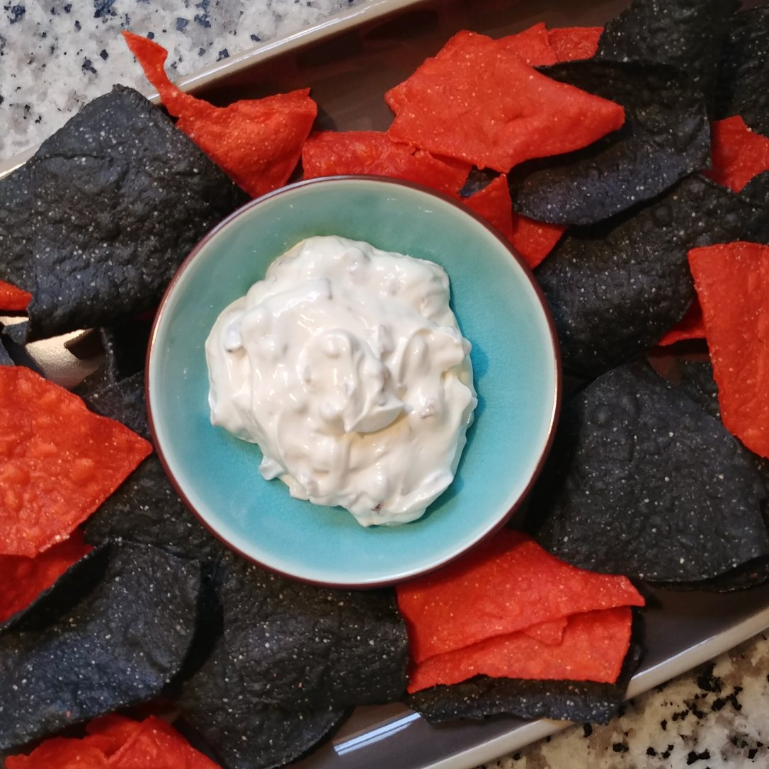 In a bowl, combine the sour cream, mayo, garlic powder, white pepper, remaining 1/ 2 teaspoon of salt and onions. Stir to combine. Cover and refrigerate for at least an hour, preferably overnight. Serve with chips and veggies.