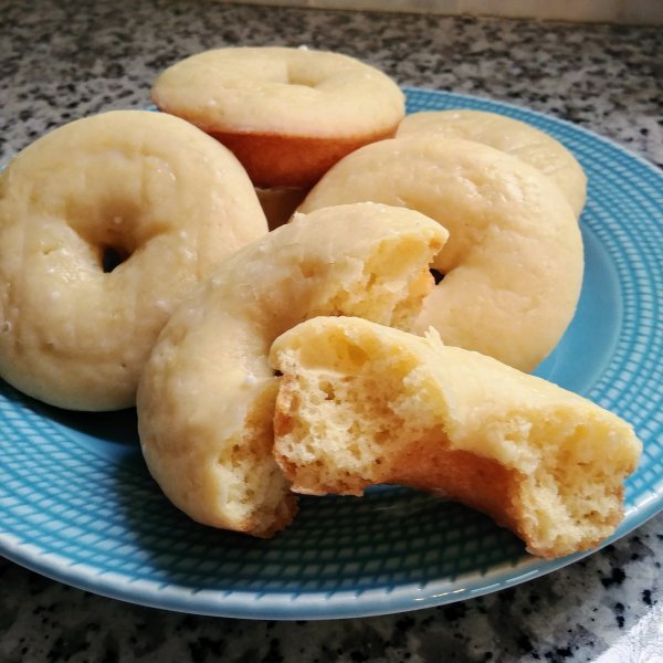 In a shallow bowl, whisk the glaze ingredients together until smooth. The glaze should be on the thinner side. Dip each donut into the glaze and flip over to coat both sides. Place back on a wire rack. Enjoy once the donuts have completely cooled.