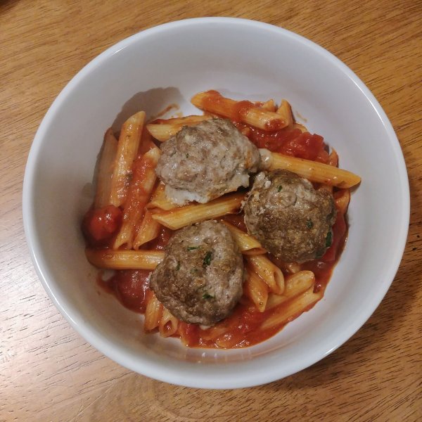 Using a small cookie scoop, scoop out the meatballs and roll into balls. Place on the prepared baking sheet. Bake for 20 to 25 minutes or until brown and cooked through. Add to warmed marinara sauce and serve over pasta.