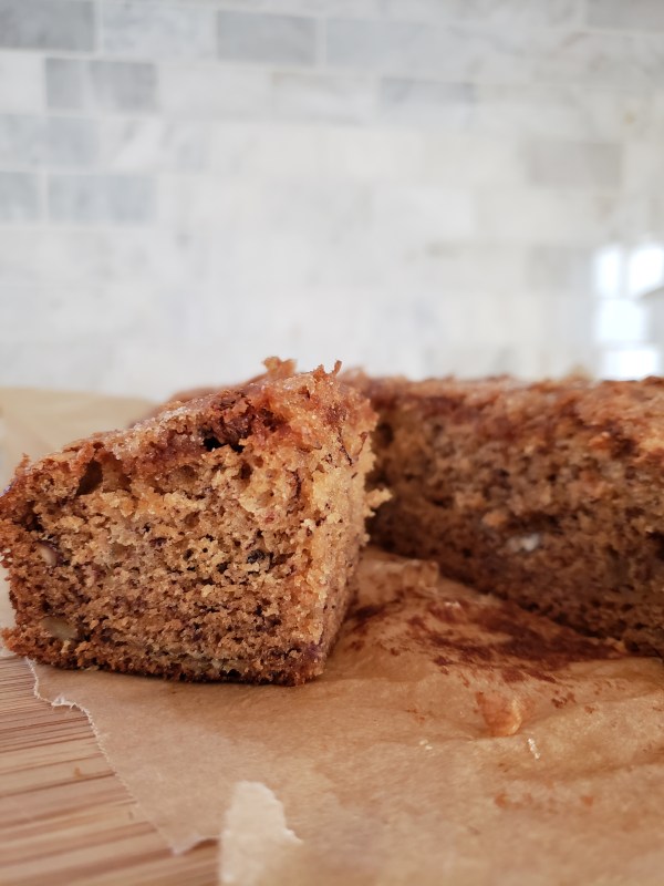 It takes just like banana bread, but has a crunchy layer on top from sugar. It was so good and added the amount of sweetness the cake needed. My kids devoured it!