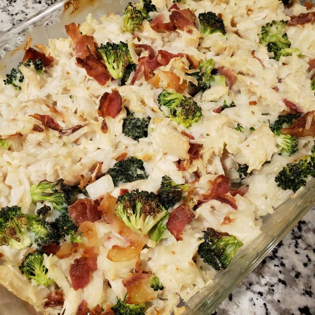 We’re in a bit of a dinner rut again and I’m on the hunt for some new recipes. I feel like we have been eating the same thing every week. I had several packs of chicken breast and bacon in my freezer and wanted to make something with both. I found this recipe for an Alfredo casserole and thought it would be delicious. It was so good!