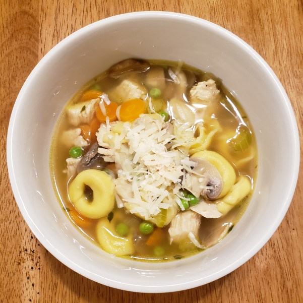 I’m working on cleaning out my garage freezer and had a turkey breast that I needed to use. My family is not a big fan of turkey since they all prefer dark meat and there is never enough. I also had some frozen tortellini and chicken stock and figured soup would be the perfect way to use it all up.