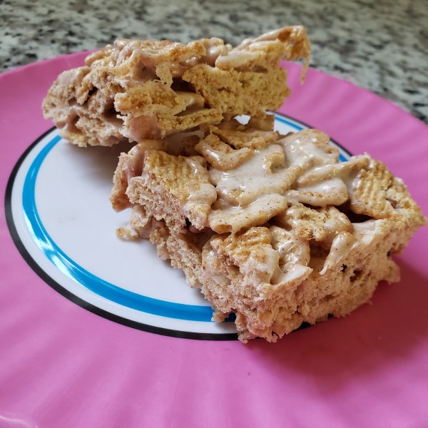 The answer is YES!!! Oh these bars are so good. The cinnamon in the cereal mixes so well with the gooey marshmallow. I’m trying to not devour the entire pan.