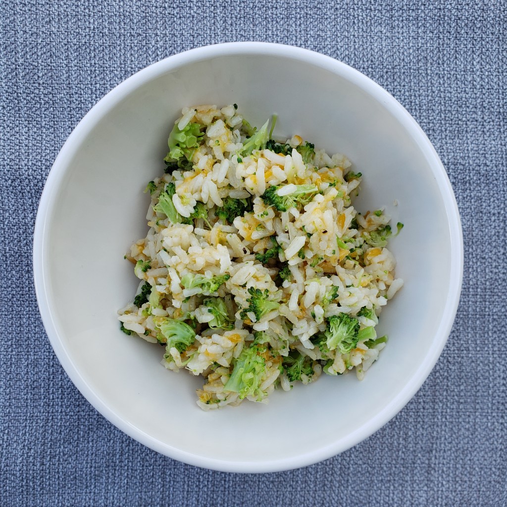 It was easy to make and pair great with roasted chicken quarters. You could easily switch out the broccoli for another veggie or reduce the amount in half and add peas or carrots. It’s a great versatile recipe!