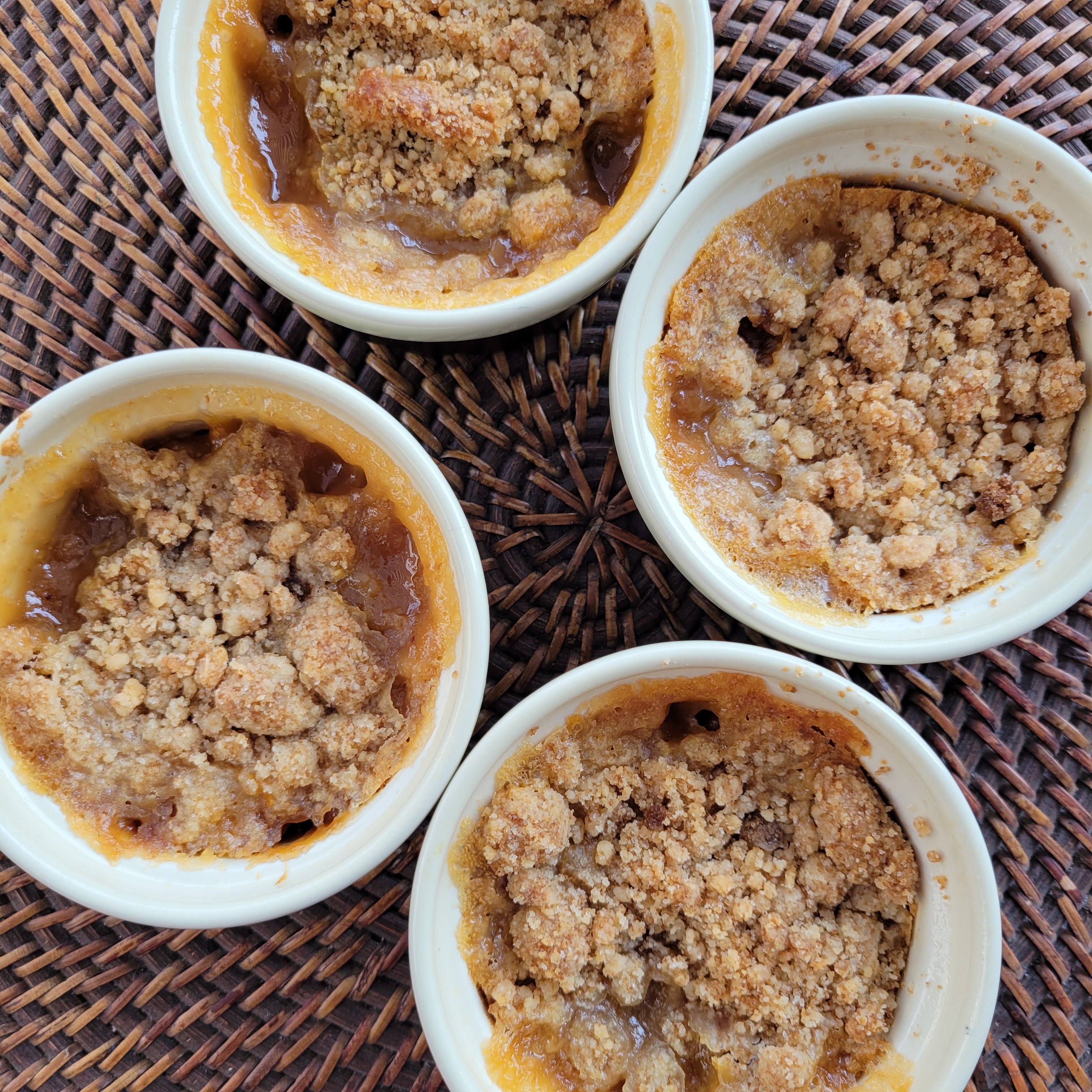 They are simple and easy to make. First you make the filling in a bowl, add it to the ramekins and then use the same bowl to make the topping. Perfect!