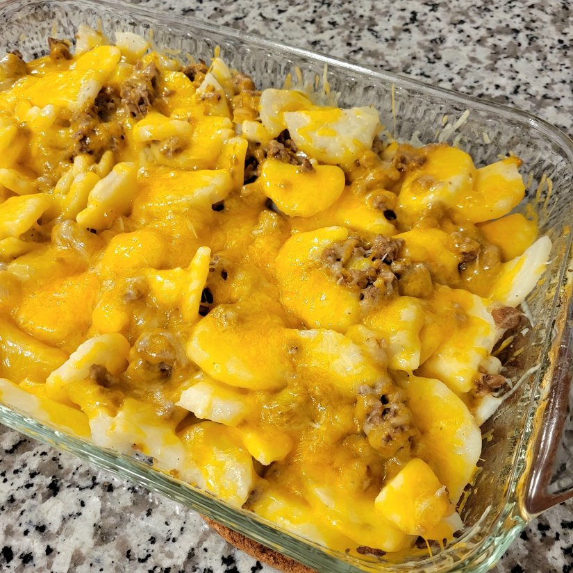 My family is a big fan of having breakfast for dinner and this recipe for cheesy sausage and potatoes was a big hit. It was simple and easy to make and definitely will be something I make often.
