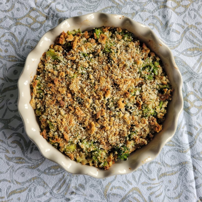 This casserole is a mix of stuffing, broccoli, cheese and some other ingredients to combine it all together. I add a little bit of gravy to mine when I’m eating it with Thanksgiving dinner and turkey. I hope you enjoy this recipe as much as my family does!