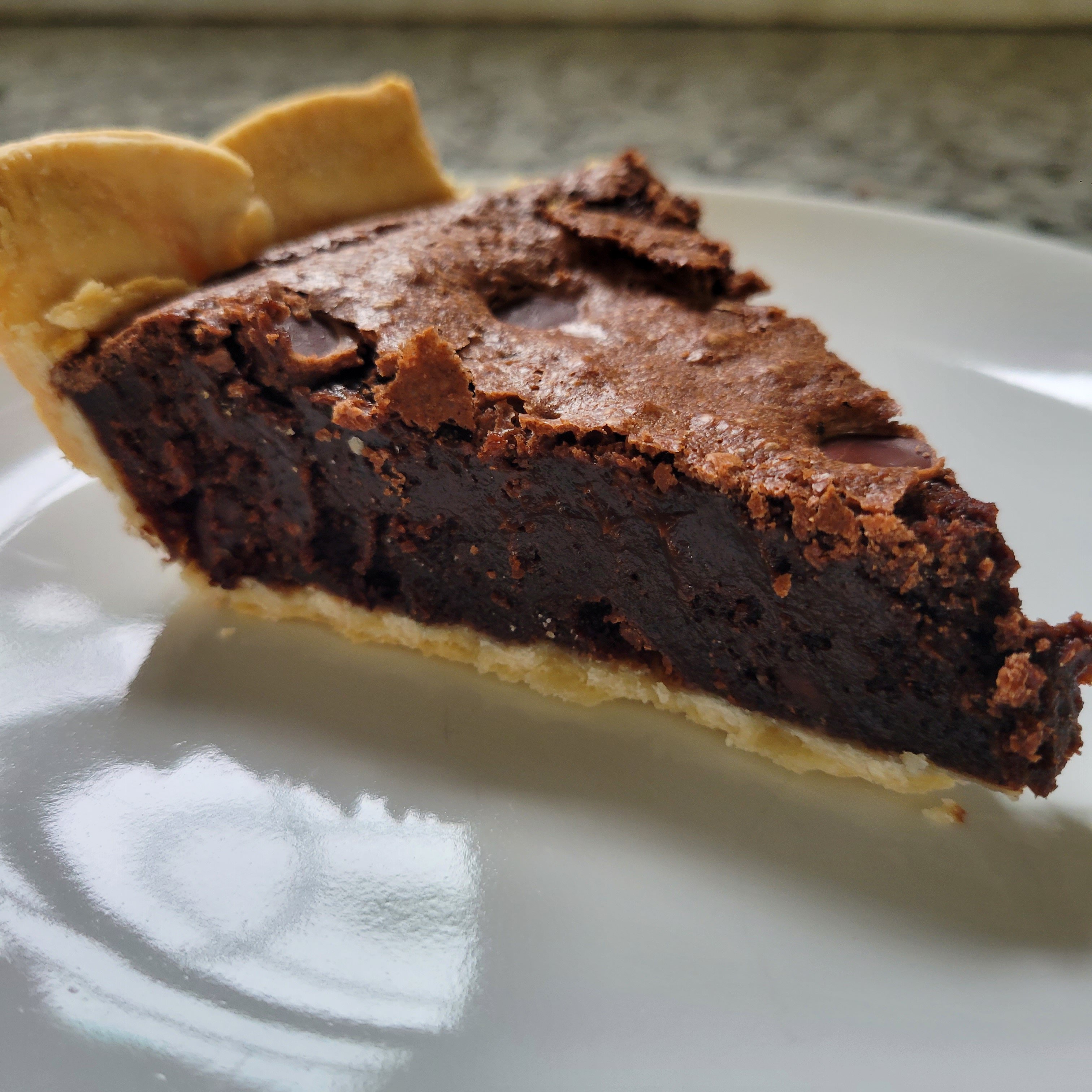 Pour the batter into the pie crust and evenly smooth out. Sprinkle the remaining chocolate chips over the top. Bake for 40 – 45 minutes until brownie is set. If the crust is browning too quickly, tent with aluminum foil. Remove from oven and allow to cool before slicing.